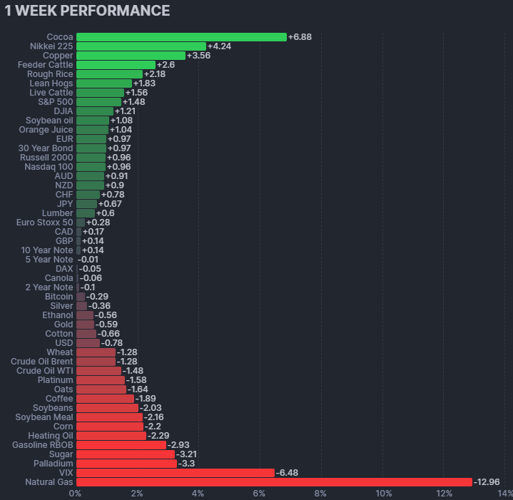 주간/월간 주요 지수 및 채권, 원자재 상품 수익률